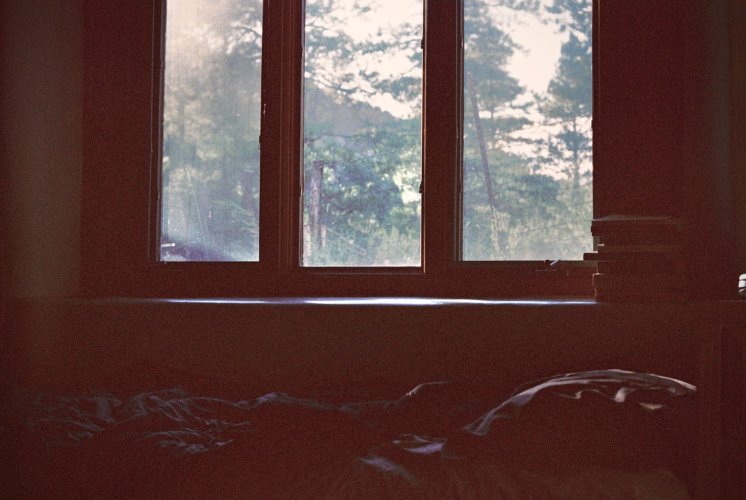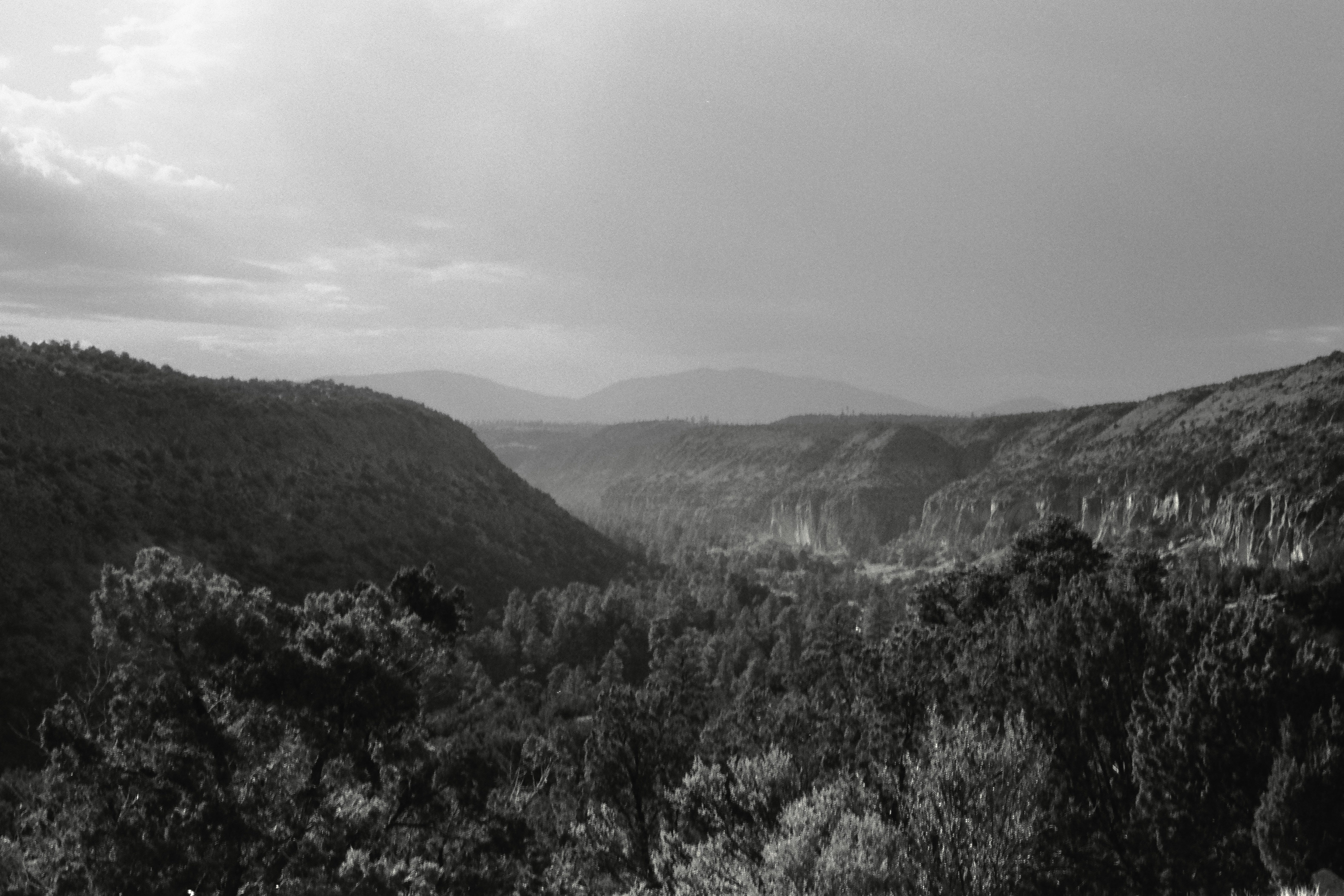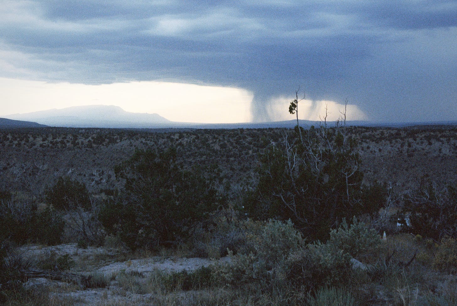 The last goodbyes of light. The clock strikes 8:30 and I lay down to rest. That is how you rest, right? Cotton on springs on metal on stone, wrapped in adobe, capped by vigas. My window sits wide open, gnats spiral in front of the mesh. Waiting for a breeze to flow down the canyon, sweating, I contemplate and pray. Ecclesial verbs, but what or who am I speaking to? Who did I want to hear me? From the ponderosa boughs, the hermit thrush has been singing for hours, as the tangerine peels of clouds thickened into dark blue and grey bruises. From its tuffaceous perch, the canyon wren has been singing for hours. As they sing together, language spirals like the gnats, maybe creating the breeze that strikes the moisture of my body with a moisture of its own. Are you paying attention?